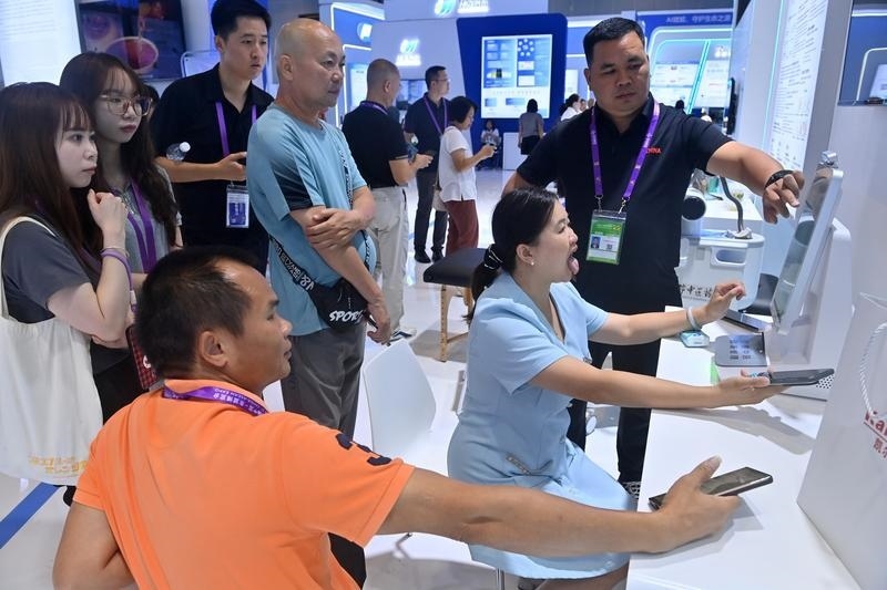 2025年9月19日,在廣西南寧國際會(huì)展中心,參觀者在體驗(yàn)人工智能看病。新華社記者 陸波岸 攝