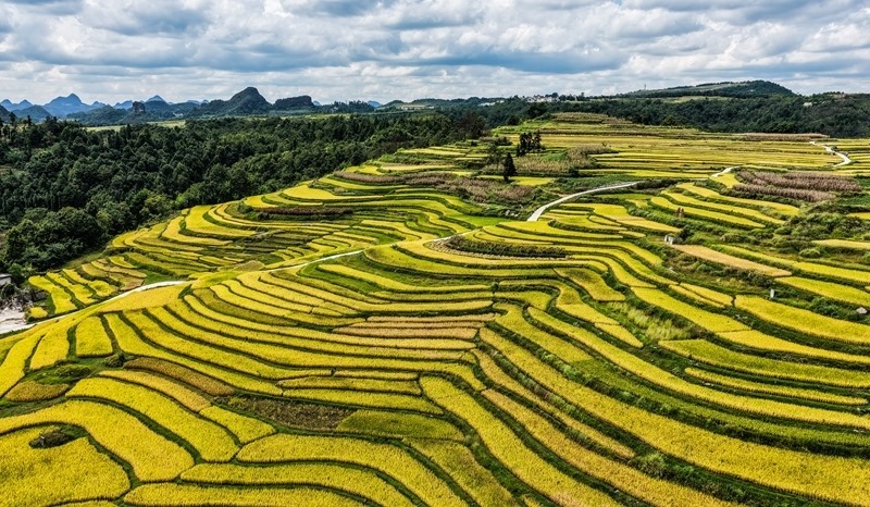 長順縣長寨街道中塘村的梯田風(fēng)光(9月17日攝,無人機(jī)照片)。