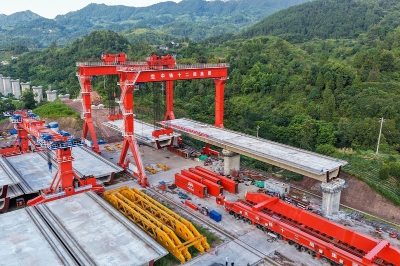 當日,由中鐵十二局集團承建的渝萬高鐵江林村特大橋進入架梁施工作業(yè)階段。渝萬高鐵是我國“八縱八橫”高鐵網(wǎng)包(銀)海、京昆通道的組成部分,正線全長251公里,設(shè)計時速350公里。