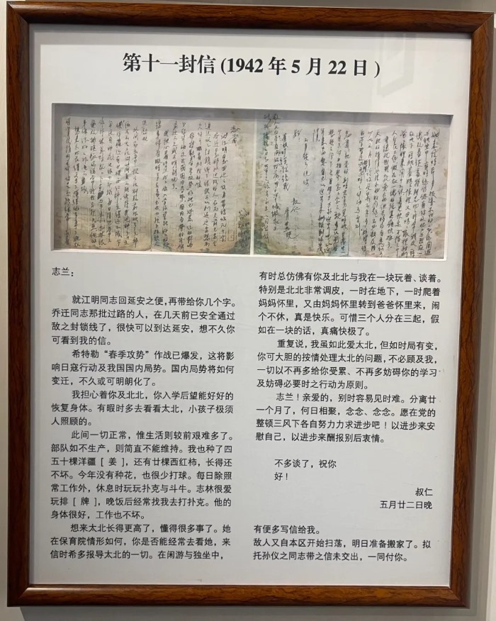 展出的左權(quán)將軍部分家書。(新華網(wǎng) 于楊 攝)