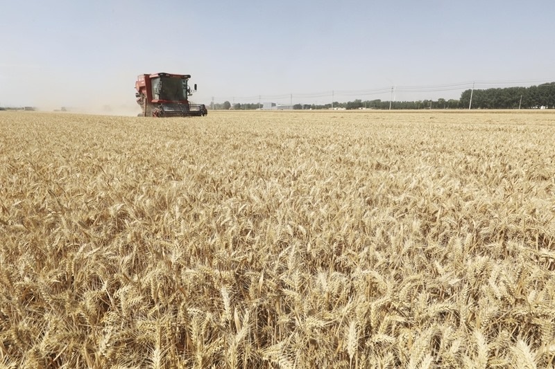 6月5日,河南省焦作市溫縣武德鎮(zhèn)農(nóng)民駕駛收割機(jī)收獲小麥。
