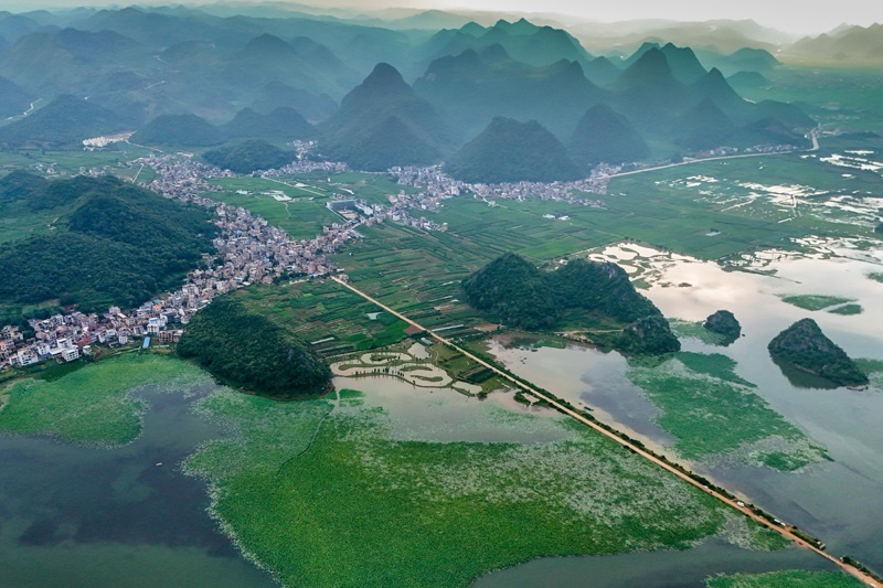 7月15日拍攝的普者黑景區(qū)風(fēng)光(無人機(jī)照片)。