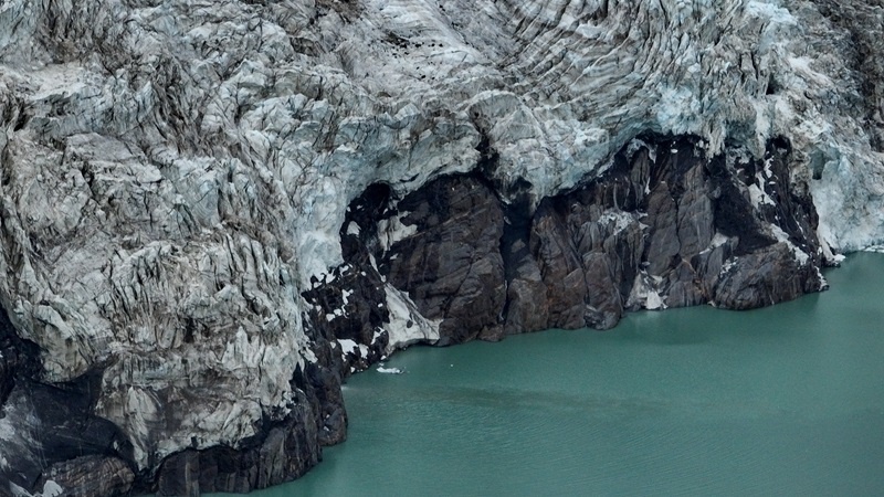 7月19日拍攝的薩普冰川冰舌末端(無人機照片)。
