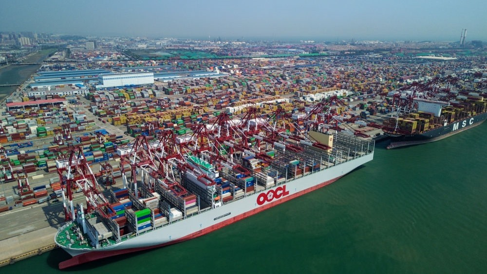 這是青島港集裝箱碼頭(2025年5月29日攝,無人機照片)。新華社記者 徐速繪 攝