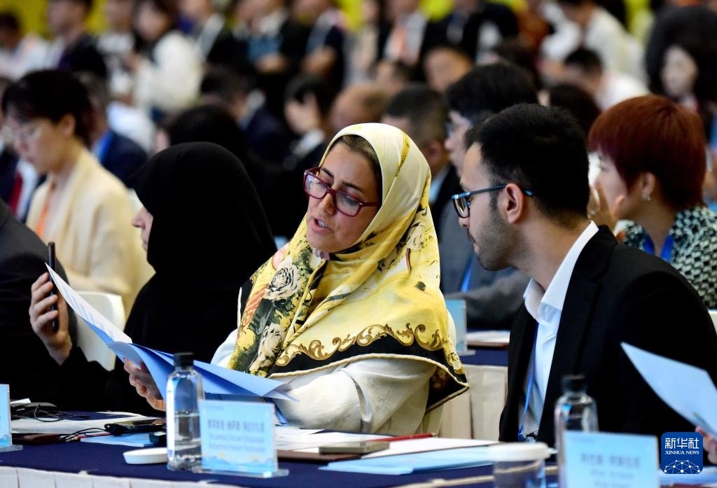 這是7月25日拍攝的上海合作組織媒體智庫(kù)峰會(huì)全體會(huì)議現(xiàn)場(chǎng)。新華社記者 高潔 攝