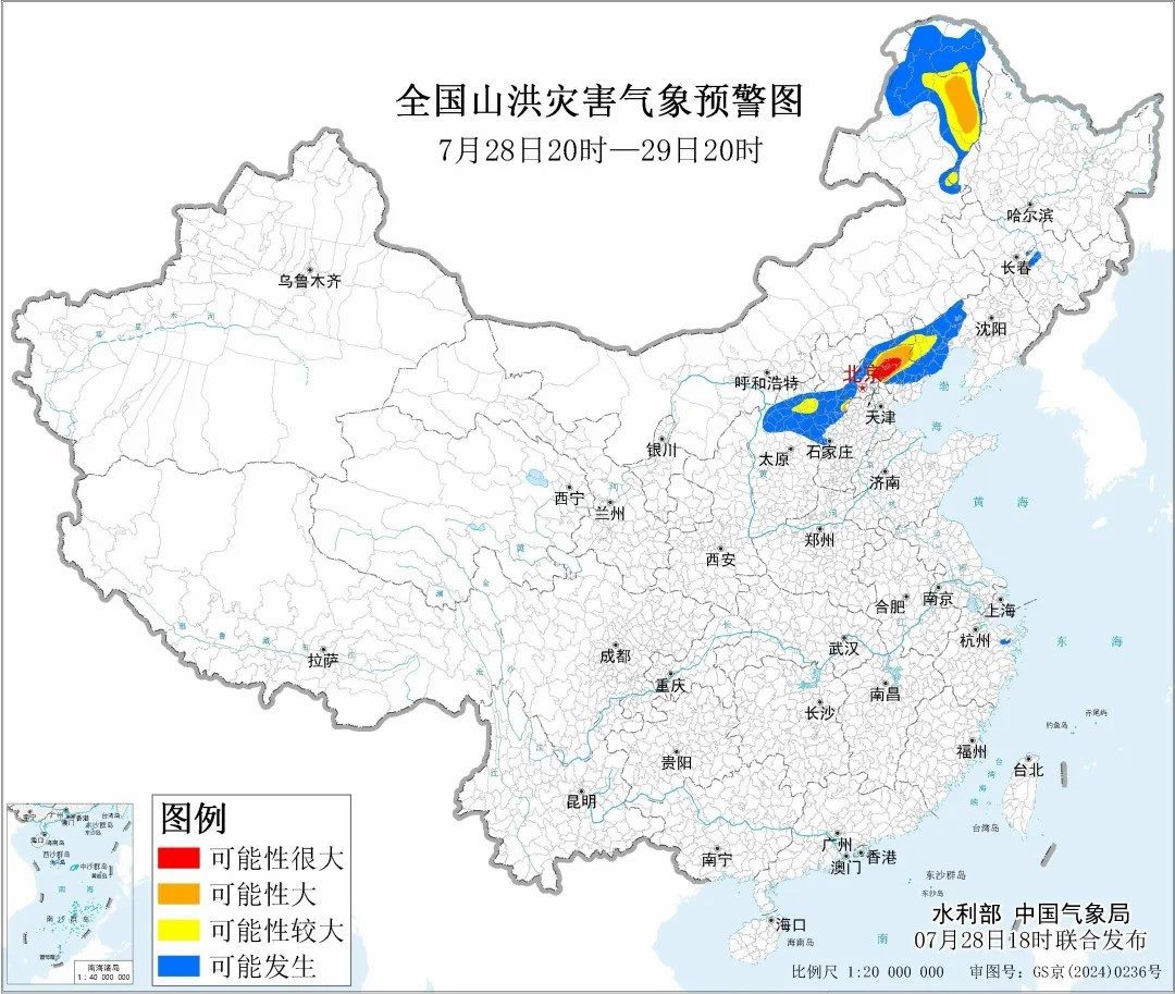 據(jù)“中國水利”微信公眾號消息,水利部和中國氣象局7月28日18時聯(lián)合發(fā)布紅色山洪災(zāi)害氣象預(yù)警:預(yù)計,7月28日20時至7月29日20時,北京東部、天津北部、河北中部和東北部、內(nèi)蒙古東北部、遼寧西部、黑龍江西部等地部分地區(qū)發(fā)生山洪災(zāi)害可能性大(橙色預(yù)警),其中,北京東部、天津北部、河北東北部局地發(fā)生山洪災(zāi)害可能性很大(紅色預(yù)警),預(yù)警區(qū)域涉及的縣(市、區(qū))見下表。其他地區(qū)也可能因局地短歷時強(qiáng)降水引發(fā)山洪災(zāi)害,請各地注意做好實時監(jiān)測、防汛預(yù)警和轉(zhuǎn)移避險等防范工作。