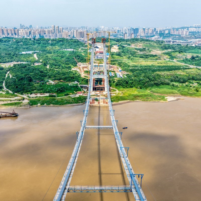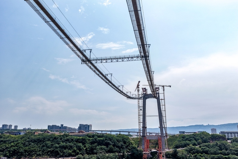 當(dāng)日,由重慶城投集團(tuán)投資、城投建設(shè)公司組織建設(shè)、中國鐵建大橋局承建的黃桷沱長江大橋順利完成主纜架設(shè)工作,標(biāo)志著大橋建設(shè)即將進(jìn)入鋼桁梁吊裝工序。黃桷沱長江大橋全長1260米,主跨765米,為單跨懸吊雙塔三跨連續(xù)鋼桁梁懸索橋,是國內(nèi)最大跨徑公軌兩用懸索橋。黃桷沱長江大橋是渝長高速復(fù)線連接道工程的控制性節(jié)點工程,建成后將成為聯(lián)系重慶主城區(qū)長江南北兩岸的重要交通干道。