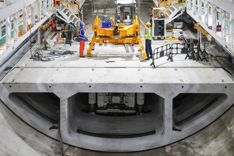8月1日,施工人員檢查管片吊運(yùn)機(jī)工作狀況。