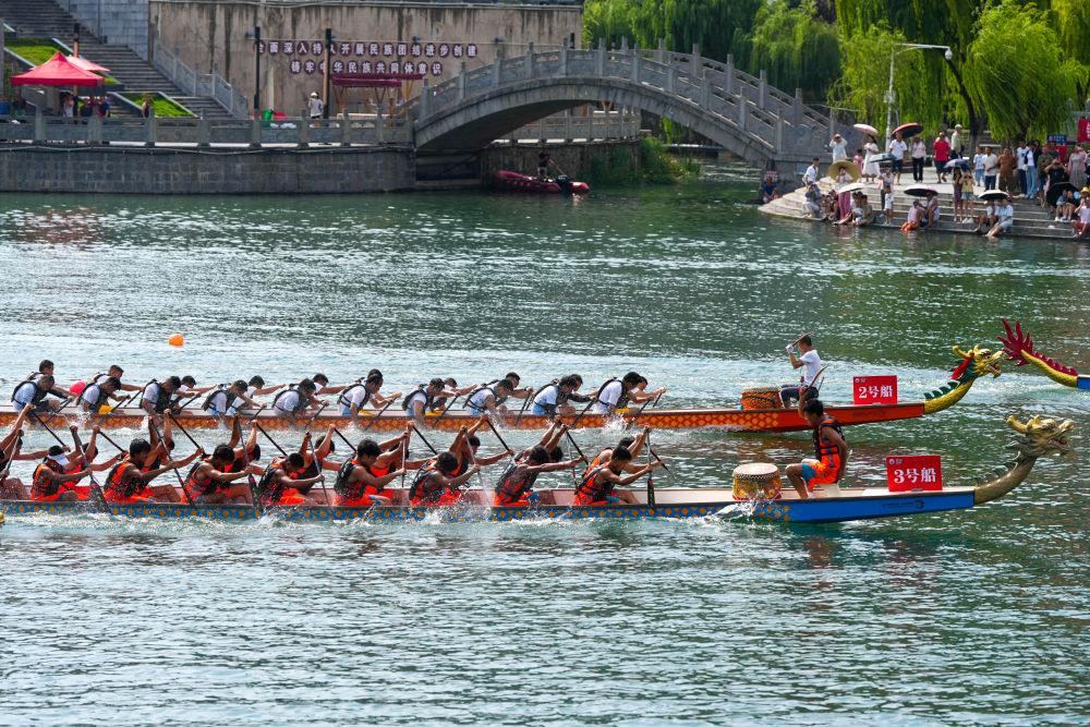 龍舟在本次世運(yùn)會(huì)上首次成為正式比賽項(xiàng)目,這也符合世運(yùn)會(huì)設(shè)項(xiàng)突出地域特色的特點(diǎn)。圖為貴州省黔東南苗族侗族自治州鎮(zhèn)遠(yuǎn)縣?陽(yáng)河上的龍舟比賽。新華社發(fā)(龍建睿攝)