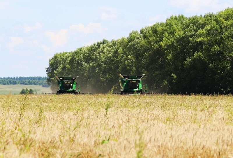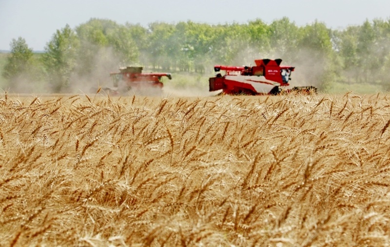 8月5日,位于黑龍江省五大連池市的大慶油田農(nóng)場調動多臺聯(lián)合收割機搶收小麥。