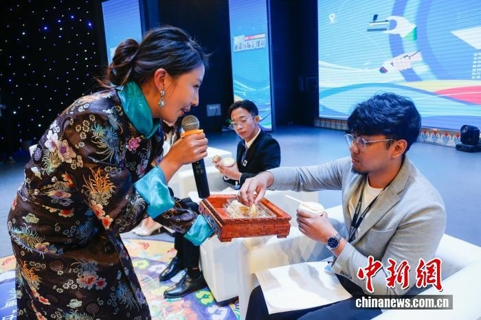 2024年8月18日,“同飲一江水 光影耀瀾湄”2024瀾湄國(guó)際影像周在青海省玉樹(shù)藏族自治州玉樹(shù)市正式啟動(dòng)。圖為來(lái)自瀾滄江-湄公河流域國(guó)家的6名青年代表品嘗玉樹(shù)酸奶、奶酪等當(dāng)?shù)靥厣r(nóng)畜產(chǎn)品。中新社記者 馬銘言 攝