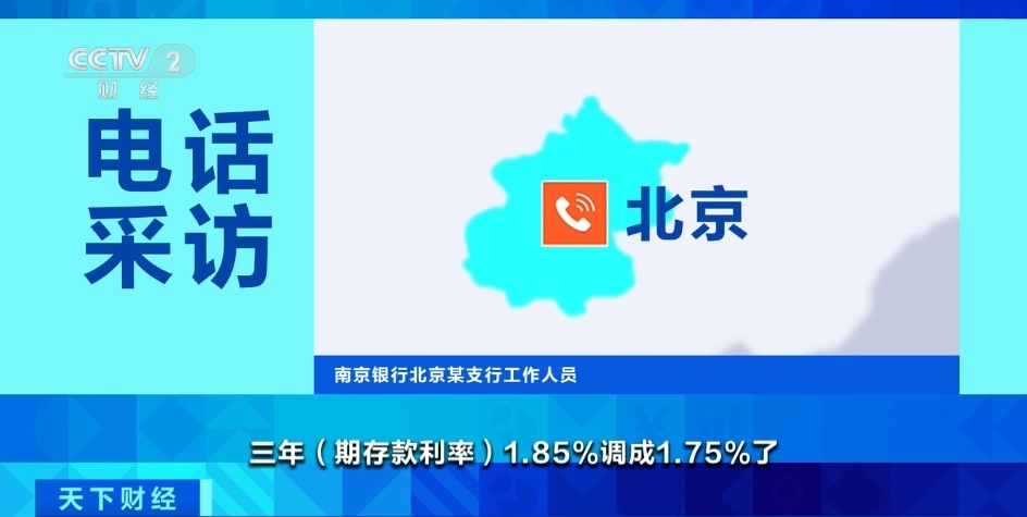 南京銀行北京某支行工作人員:上周五,三年(期存款利率)1.85%調(diào)成1.75%了。
