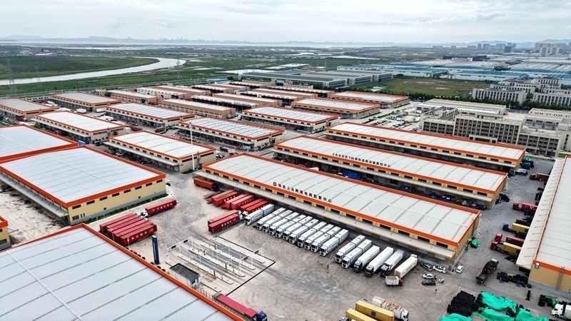 這是位于青島膠州市的中國傳化(上合)國際物流港。該物流港集智能倉儲、零擔分撥、多式聯(lián)運等功能于一體(8月27日攝,無人機照片)。