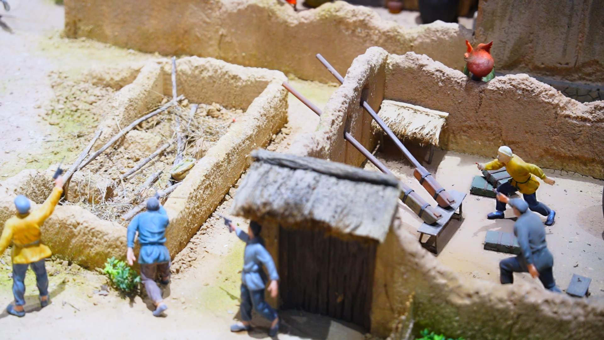 微山島爭奪戰(zhàn)模型,戰(zhàn)士們使用“火雞陣”與鴨槍