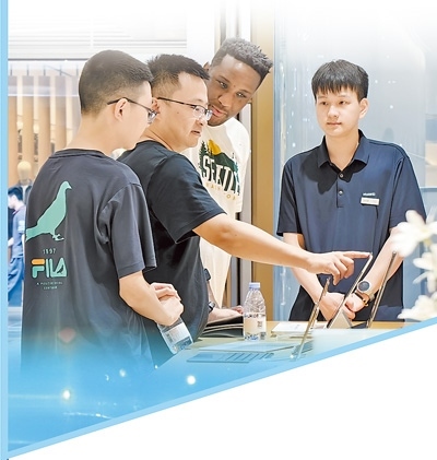 “入境游客喜歡選購(gòu)耳機(jī)、AI眼鏡以及半導(dǎo)體手持制冷風(fēng)扇。今年歐洲天氣比較炎熱,有一名外國(guó)客人一次性買(mǎi)了兩箱半導(dǎo)體手持制冷風(fēng)扇?!卑桶厣畴娮赢a(chǎn)品生活館負(fù)責(zé)人盧華介紹,與去年相比,今年外國(guó)客商增加20%,高峰時(shí)段店里有30%的客戶(hù)是外國(guó)人。