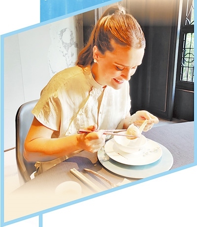 “很神奇,每一口的味道都不一樣,前一口嫩滑,下一口又緊實(shí),接下來(lái)又有爆漿的感覺(jué)……”羅伯特持刀叉,羅梅羅熟練地使用筷子,兩人大快朵頤。