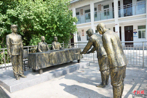 漯河市第二中學內(nèi)復原日軍受降儀式現(xiàn)場雕像。王宇 攝