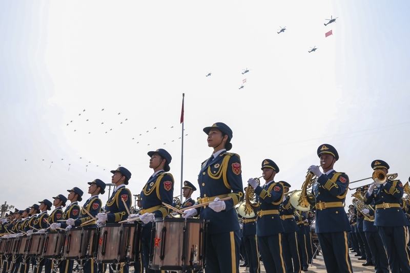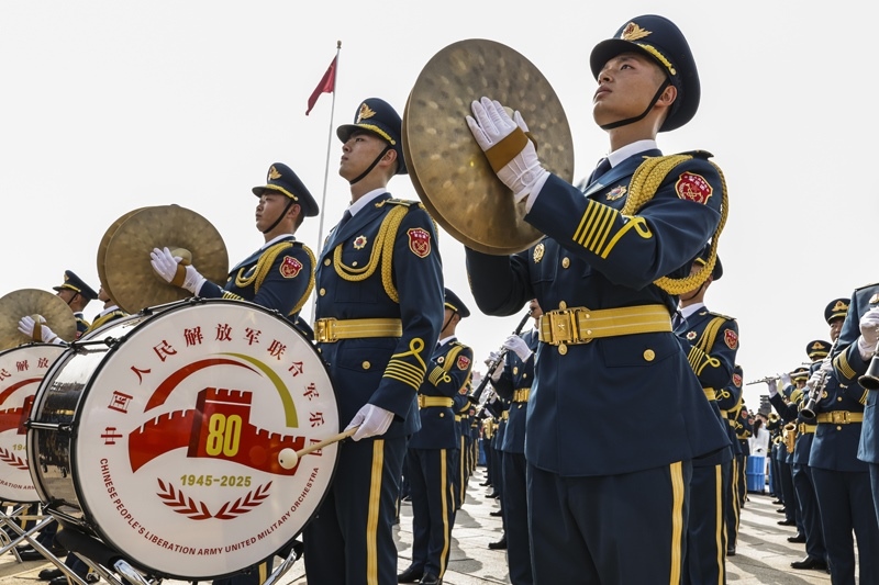 9月3日,紀念中國人民抗日戰(zhàn)爭暨世界反法西斯戰(zhàn)爭勝利80周年大會在北京隆重舉行。這是中國人民解放軍聯(lián)合軍樂團在演奏。