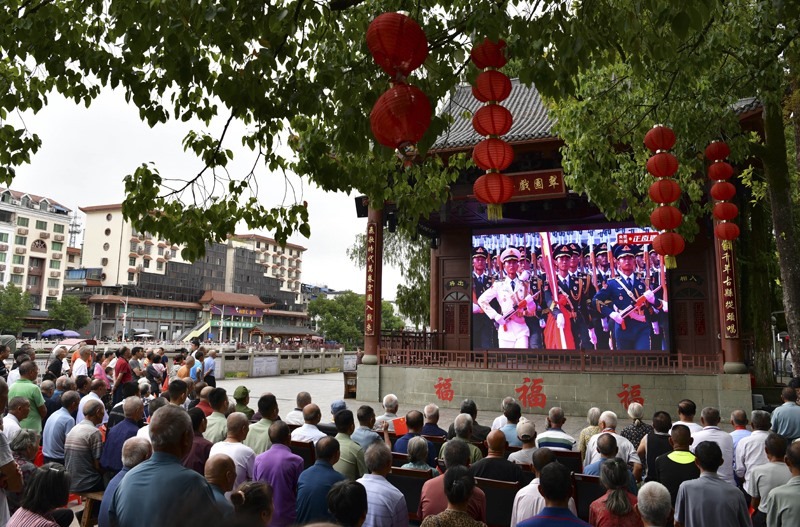 9月3日,在福建省三明市寧化縣,退伍軍人和群眾一起觀看紀(jì)念中國人民抗日戰(zhàn)爭暨世界反法西斯戰(zhàn)爭勝利80周年大會直播。