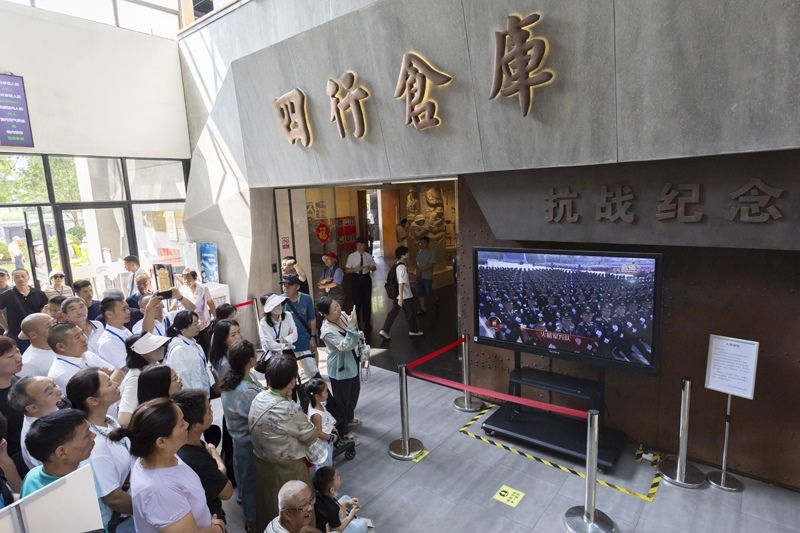 9月3日,市民在上海四行倉庫抗戰(zhàn)紀(jì)念館觀看紀(jì)念中國人民抗日戰(zhàn)爭暨世界反法西斯戰(zhàn)爭勝利80周年大會直播。