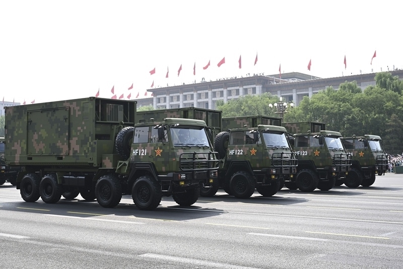 9月3日,紀(jì)念中國人民抗日戰(zhàn)爭(zhēng)暨世界反法西斯戰(zhàn)爭(zhēng)勝利80周年大會(huì)在北京隆重舉行。這是裝備方隊(duì)接受檢閱。