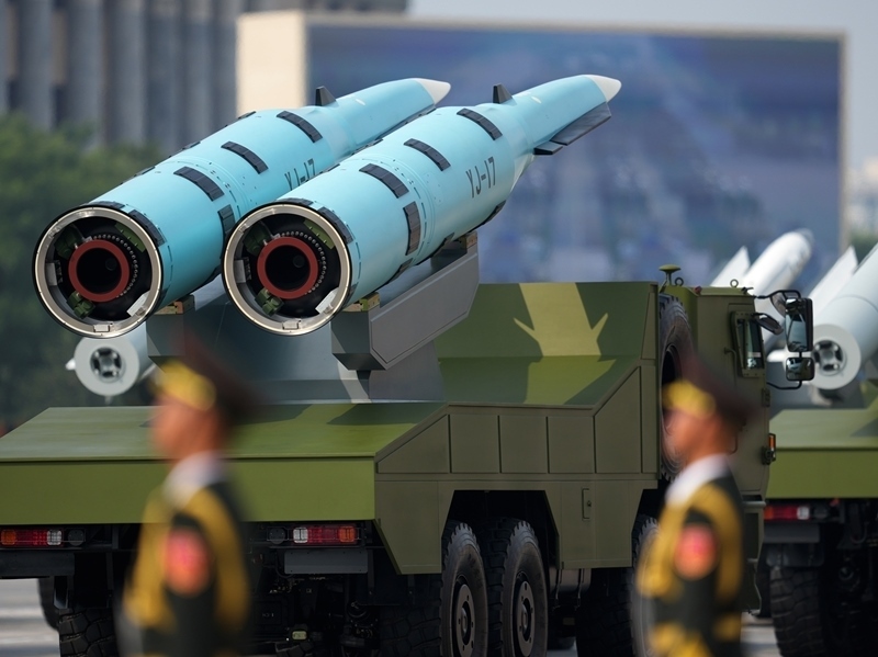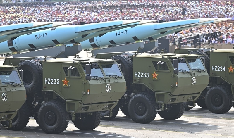 9月3日,紀(jì)念中國人民抗日戰(zhàn)爭(zhēng)暨世界反法西斯戰(zhàn)爭(zhēng)勝利80周年大會(huì)在北京隆重舉行。這是反艦導(dǎo)彈方隊(duì)接受檢閱。