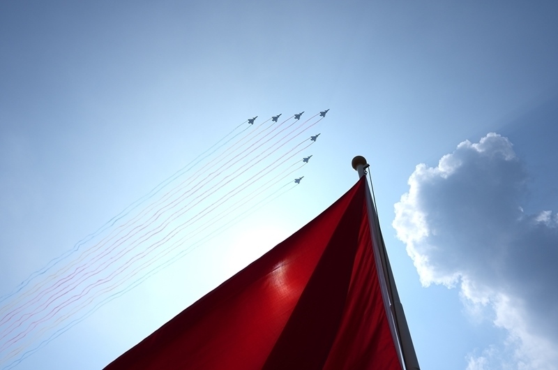 9月3日,紀(jì)念中國人民抗日戰(zhàn)爭(zhēng)暨世界反法西斯戰(zhàn)爭(zhēng)勝利80周年大會(huì)在北京隆重舉行。這是教練機(jī)梯隊(duì)接受檢閱。