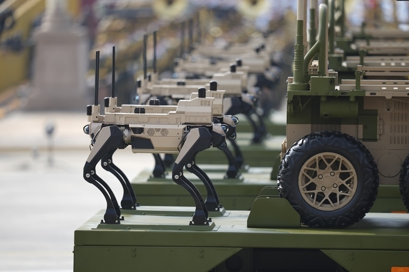 9月3日,紀(jì)念中國人民抗日戰(zhàn)爭(zhēng)暨世界反法西斯戰(zhàn)爭(zhēng)勝利80周年大會(huì)在北京隆重舉行。這是陸上無人作戰(zhàn)方隊(duì)接受檢閱。