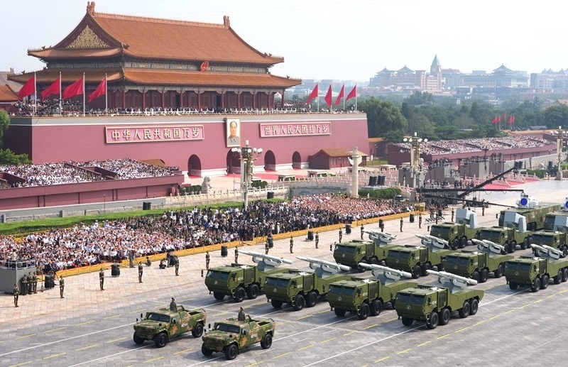 9月3日,紀(jì)念中國人民抗日戰(zhàn)爭(zhēng)暨世界反法西斯戰(zhàn)爭(zhēng)勝利80周年大會(huì)在北京隆重舉行。這是對(duì)空抗擊方隊(duì)接受檢閱。