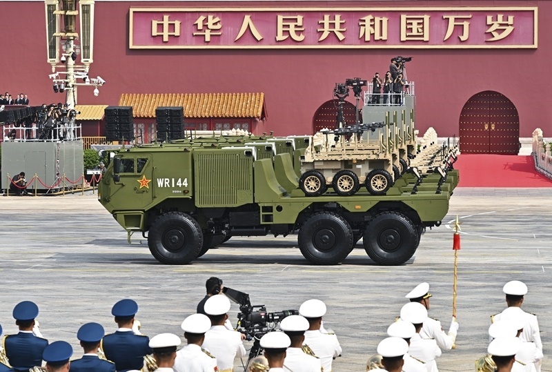 9月3日,紀(jì)念中國人民抗日戰(zhàn)爭(zhēng)暨世界反法西斯戰(zhàn)爭(zhēng)勝利80周年大會(huì)在北京隆重舉行。這是裝備方隊(duì)通過天安門廣場(chǎng)。