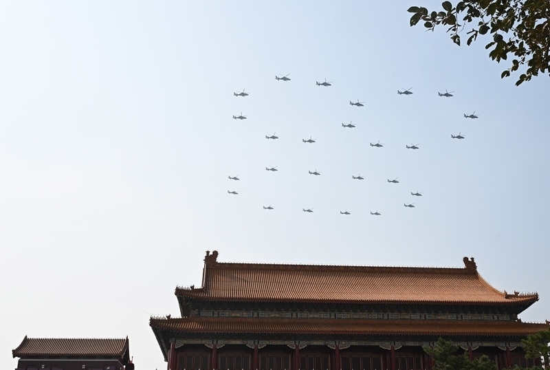 9月3日,紀(jì)念中國人民抗日戰(zhàn)爭(zhēng)暨世界反法西斯戰(zhàn)爭(zhēng)勝利80周年大會(huì)在北京隆重舉行。這是空中護(hù)旗梯隊(duì)接受檢閱。