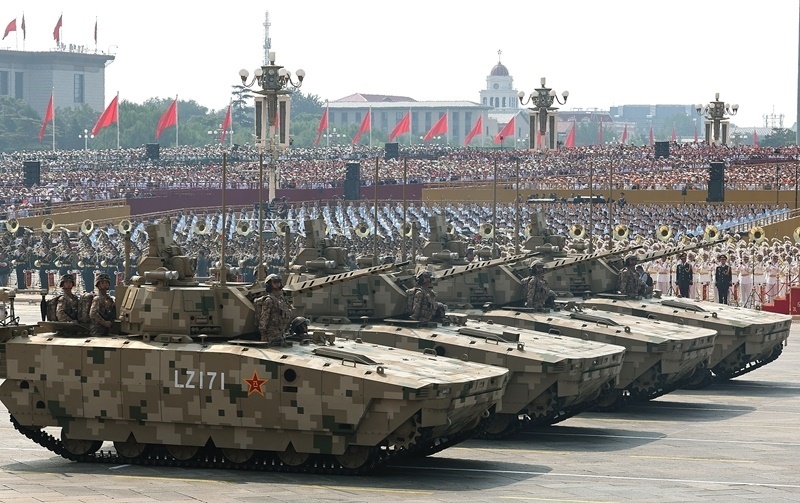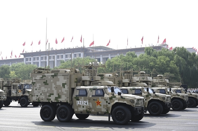 9月3日,紀(jì)念中國人民抗日戰(zhàn)爭暨世界反法西斯戰(zhàn)爭勝利80周年大會在北京隆重舉行。這是信息支援方隊(duì)接受檢閱。