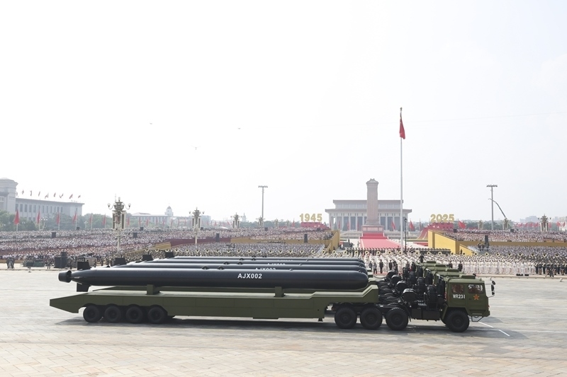 9月3日,紀(jì)念中國人民抗日戰(zhàn)爭暨世界反法西斯戰(zhàn)爭勝利80周年大會在北京隆重舉行。這是高超聲速導(dǎo)彈方隊(duì)接受檢閱。