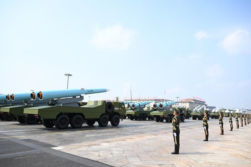 9月3日,紀念中國人民抗日戰(zhàn)爭暨世界反法西斯戰(zhàn)爭勝利80周年大會在北京隆重舉行。這是高超聲速導(dǎo)彈方隊接受檢閱。