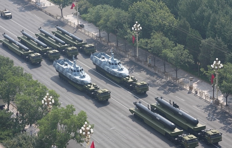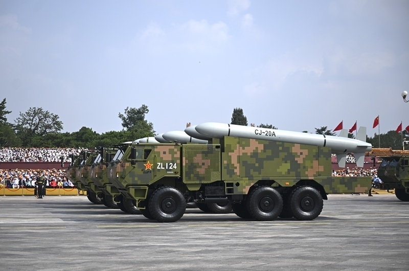 9月3日,紀念中國人民抗日戰(zhàn)爭暨世界反法西斯戰(zhàn)爭勝利80周年大會在北京隆重舉行。這是高超聲速導(dǎo)彈方隊接受檢閱。