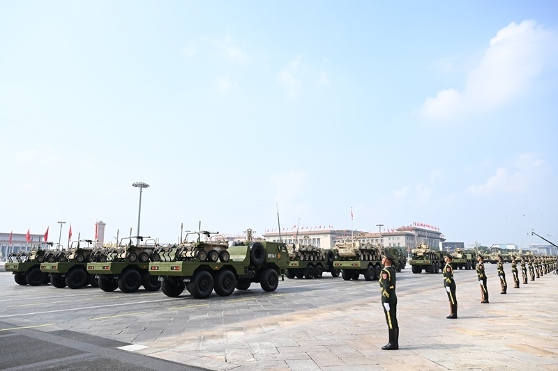 9月3日,紀念中國人民抗日戰(zhàn)爭暨世界反法西斯戰(zhàn)爭勝利80周年大會在北京隆重舉行。這是信息支援方隊接受檢閱。