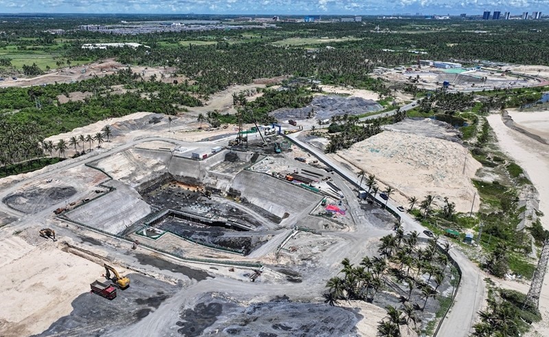 9月5日拍攝的建設(shè)中的海南商業(yè)航天發(fā)射場二期項目,遠(yuǎn)處是海南商業(yè)航天發(fā)射場(一期)和文昌航天發(fā)射場(無人機照片)。
