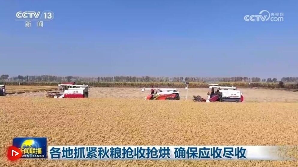 持續(xù)陰雨給華北、黃淮等地秋收帶來影響,各地千方百計做好搶收搶烘工作。山西秋糧收獲近五成,在太原清徐縣,當(dāng)?shù)亟M織300多臺水泵,進(jìn)行不間斷排水,隨著水位下降,搶收加緊進(jìn)行。山東累計調(diào)配玉米收獲機(jī)13.55萬臺,其中履帶式收獲機(jī)超萬臺,搶收玉米約3570萬畝。河北利用天氣轉(zhuǎn)晴的窗口期,抓緊秋糧搶收搶曬。江蘇調(diào)配3.5萬臺固定式烘干機(jī)、258臺移動式烘干機(jī)投入糧食搶烘。安徽秋糧收獲已過七成,農(nóng)業(yè)部門發(fā)布了753支農(nóng)機(jī)應(yīng)急作業(yè)隊和2114個烘干點信息,方便群眾聯(lián)系。同時,全省21萬臺聯(lián)合收割機(jī)全部投入作業(yè),2萬套烘干設(shè)施24小時開機(jī)烘干糧食,最大限度保障秋收。
