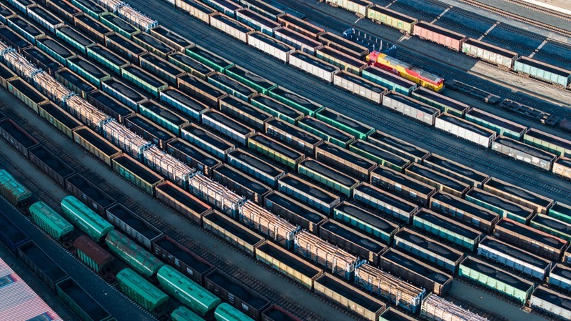 10月18日,在中國鐵路哈爾濱局集團(tuán)有限公司綏芬河站南場(chǎng),滿載進(jìn)口貨物的列車等待解體換裝(無人機(jī)照片)。