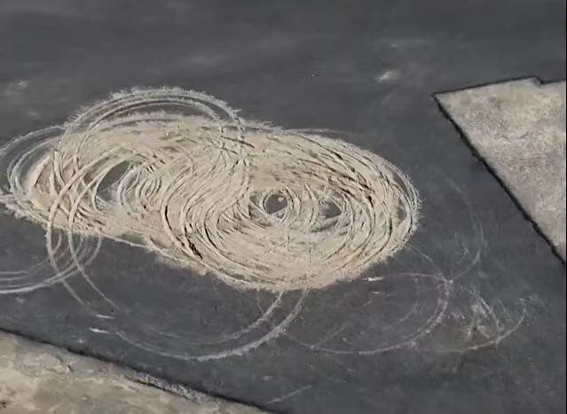 然而,近段時間以來,一些人穿越戈壁荒漠,來到這里玩漂移,留下了一個個刺眼的痕跡。尤其是在“人民”二字中間,漂移痕跡尤為嚴重,從空中俯瞰令人痛心。許多網友直言,這不僅是對戈壁景觀的破壞,更是對歷史和先輩的褻瀆。
