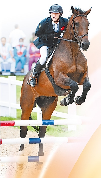 9月21日,湖北隊選手陳柏良在第十五屆全國運動會現代五項馬術比賽中。