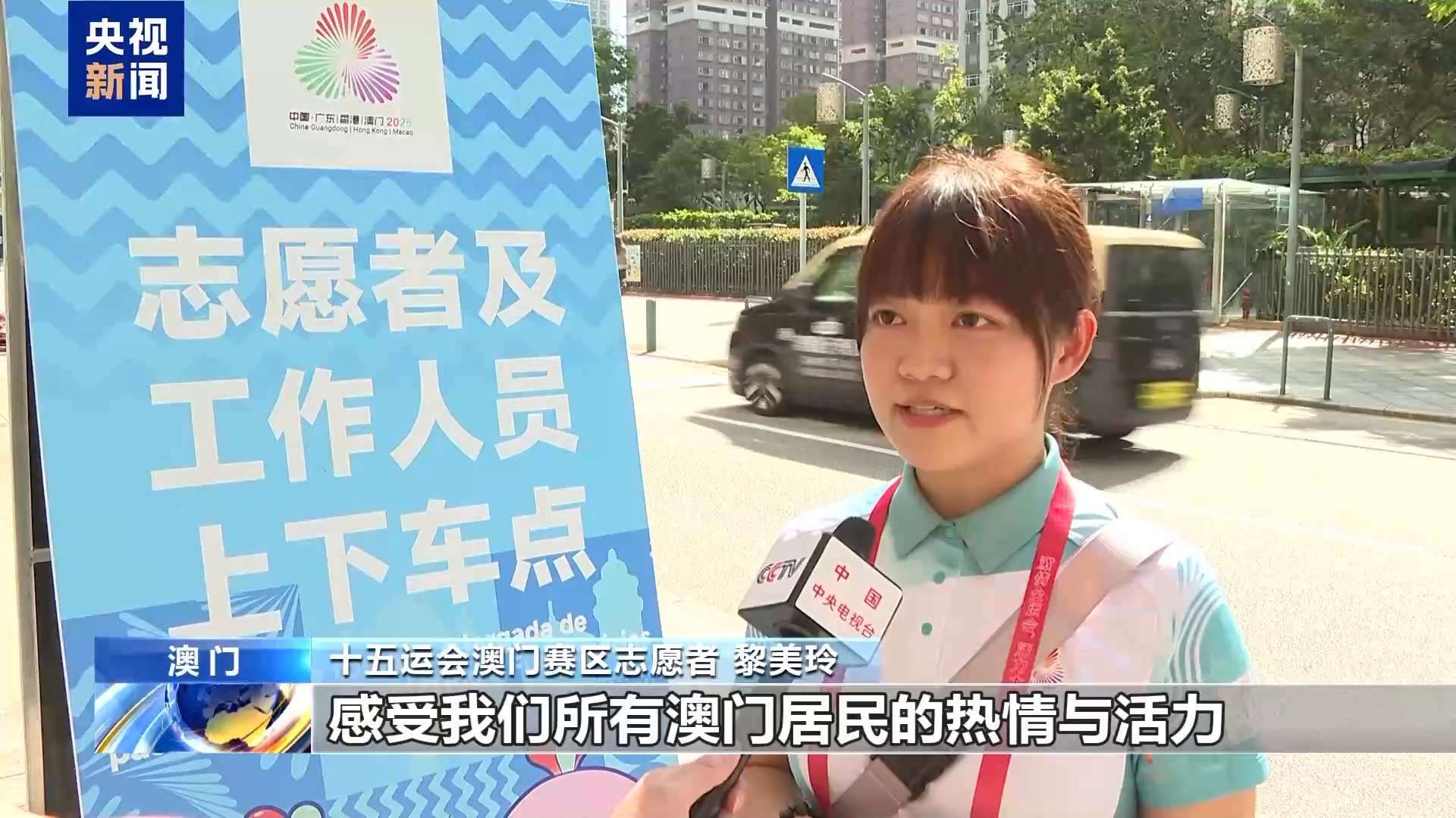 十五運(yùn)會(huì)澳門賽區(qū)志愿者 黎美玲:我本身是一名小學(xué)老師,這次很開(kāi)心以志愿者的身份參與在家門口舉辦的全運(yùn)會(huì)賽事的服務(wù)工作。我們已經(jīng)都準(zhǔn)備好了,歡迎各地的朋友來(lái)到澳門,感受激情全運(yùn)會(huì)和活力大灣區(qū),感受我們所有澳門居民的熱情與活力。