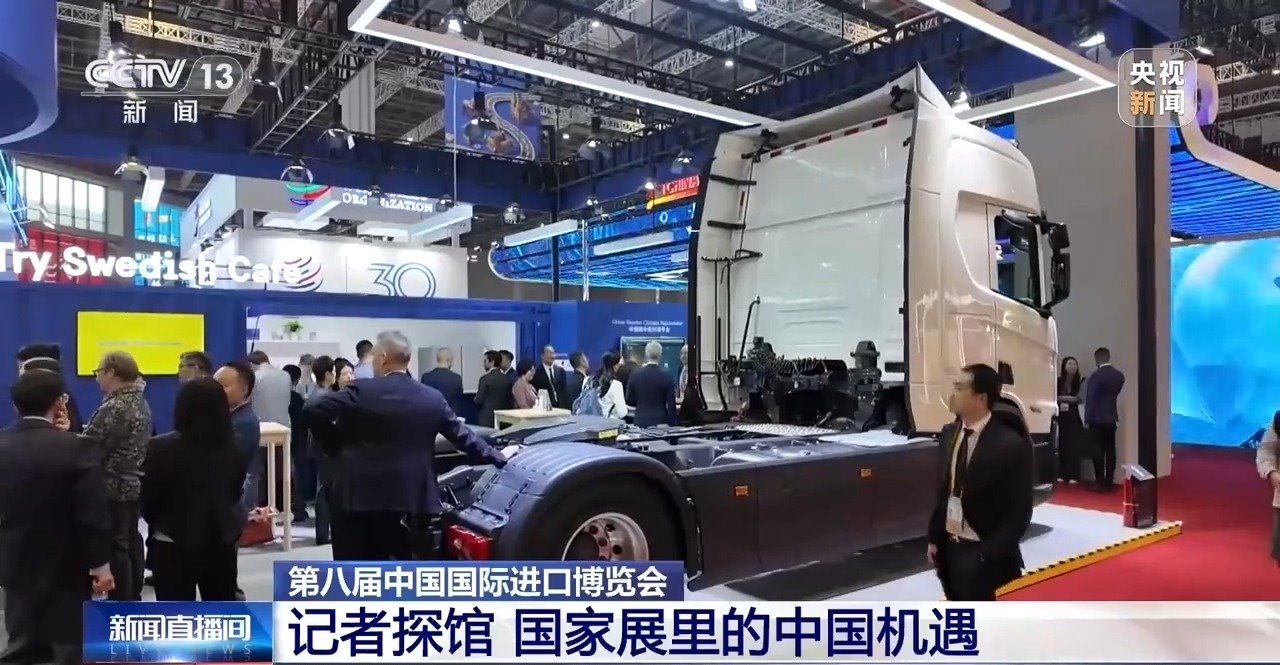 我的AI眼鏡第一時間就捕捉到了這個“大塊頭”,放眼望去,整個國家展里沒有比它還大件的展品了。這輛高端重卡車型來自瑞典,是享有“公路之王”美譽的瑞典企業(yè)斯堪尼亞帶來的重型運輸領域的最新成果。別看它塊頭大,新技術賦予了它高效節(jié)能的特點,是今年國家展里最吸睛的展品之一。