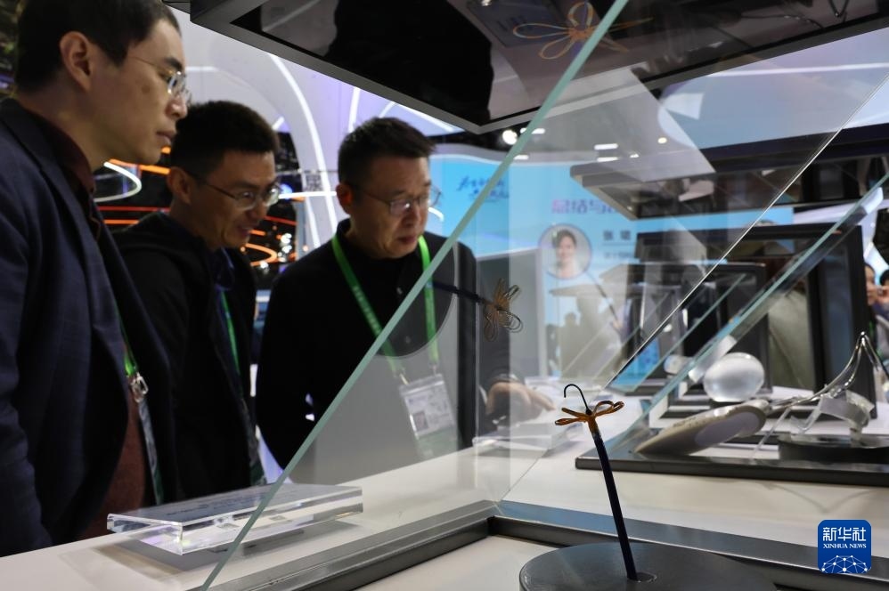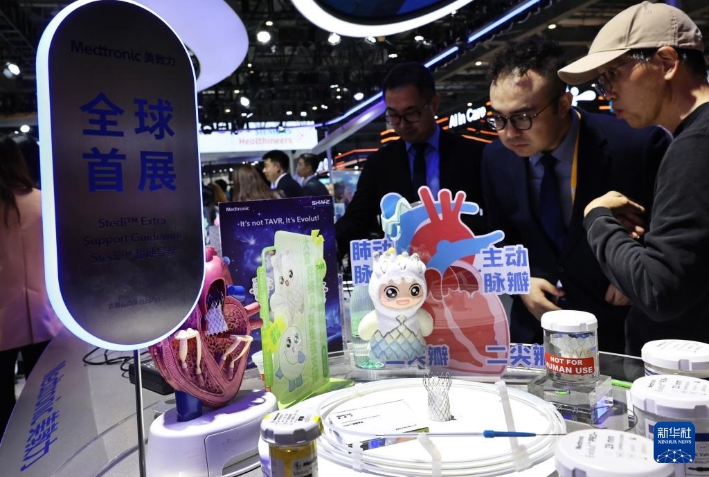 11月6日,參觀者在美敦力公司一款超硬導(dǎo)絲產(chǎn)品展臺前駐足觀看,這是該產(chǎn)品的全球首展。