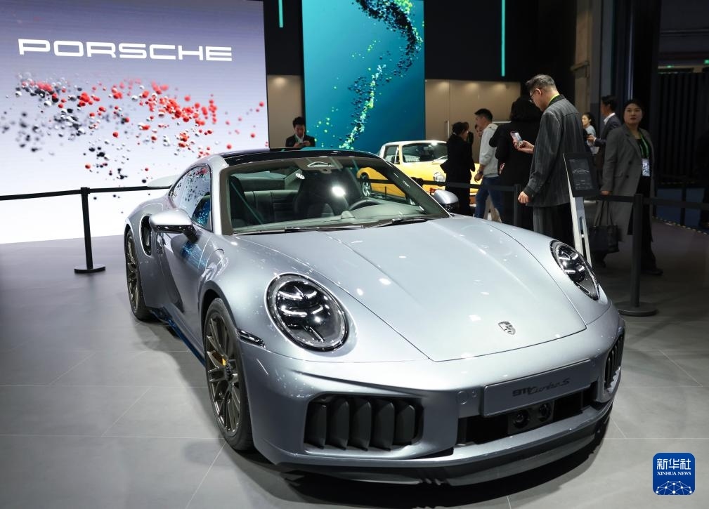 11月6日在進(jìn)博會汽車及智慧出行展區(qū)大眾汽車展臺拍攝的新款保時捷911Turbo S。這是該產(chǎn)品在亞洲首發(fā)。