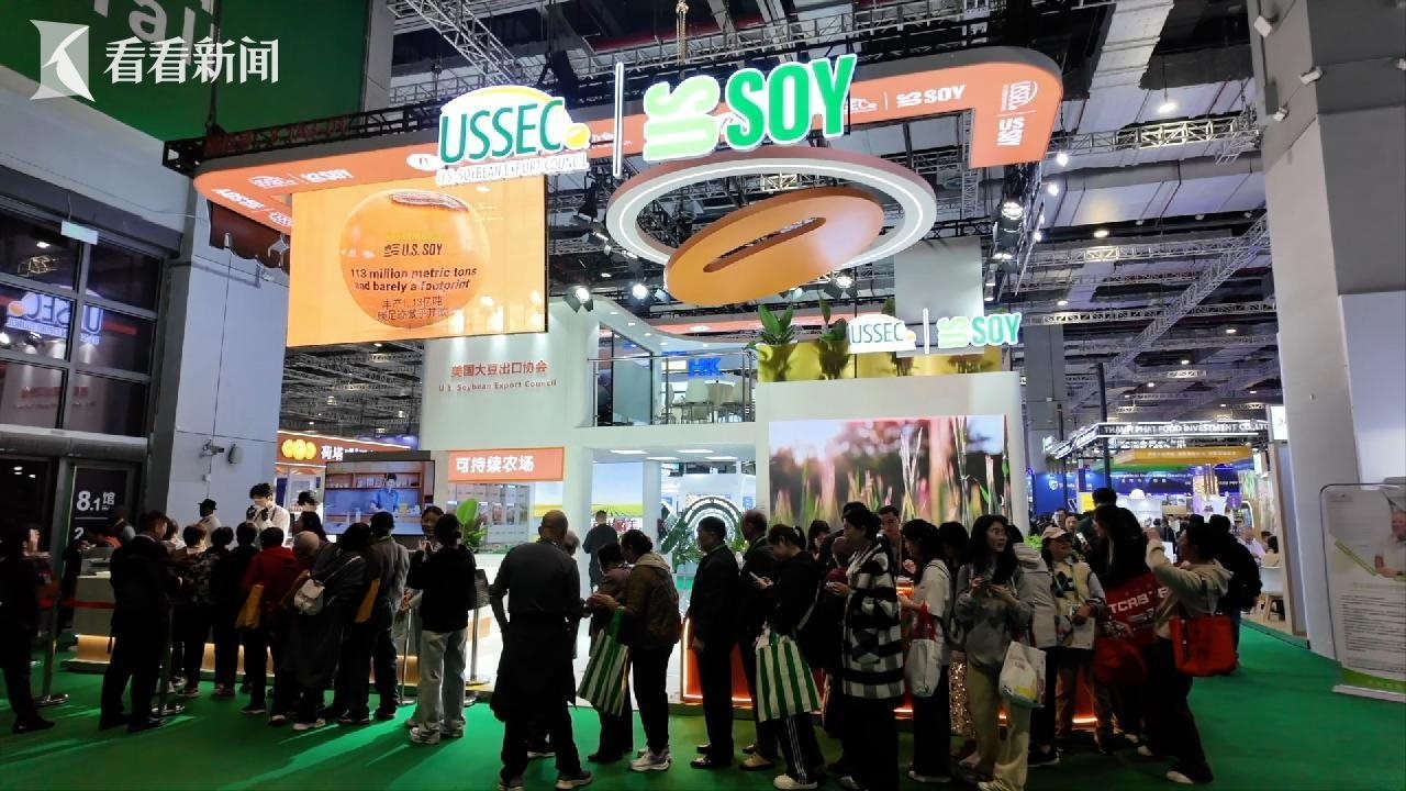 蘇健說的不是客套話。進博會一開始,他的行程就滿滿當當——開館剪彩、客商對接、媒體專訪。他的身后,是一群帶著中文名片、中文宣傳資料的豆農,賣力帶貨。“正如大家在現(xiàn)場看到的,我們可以把大豆加工成大豆油,這種油品更適合高溫烹飪?!泵绹罐r蓋思凱說。