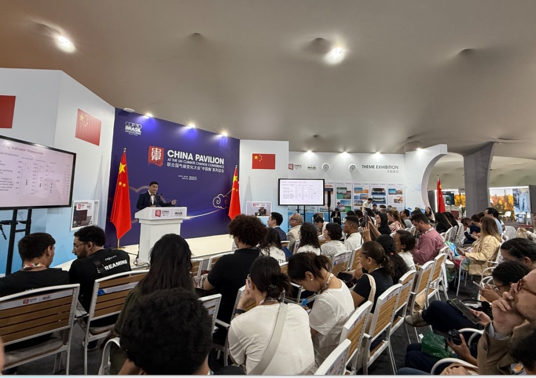 為深度參與全球氣候治理,講好我國海洋生態(tài)文明建設(shè)及可持續(xù)發(fā)展故事,向國際社會傳遞中國綠色發(fā)展理念,10日下午,“美麗海灣 美好生活”海洋生態(tài)文明故事匯暨《中國可持續(xù)發(fā)展報告(2025)》發(fā)布活動在大會中國角舉行。生態(tài)環(huán)境部副部長李高、中國外文局副局長余應(yīng)福致辭。海洋負(fù)排放國際大科學(xué)計劃國際合作部部長張傳倫,美國哥倫比亞大學(xué)可持續(xù)發(fā)展管理碩士項目副主任、教授石天傑(Satyajit Bose)等中外嘉賓作主旨演講。參加COP30大會的各國百余位嘉賓參與活動。