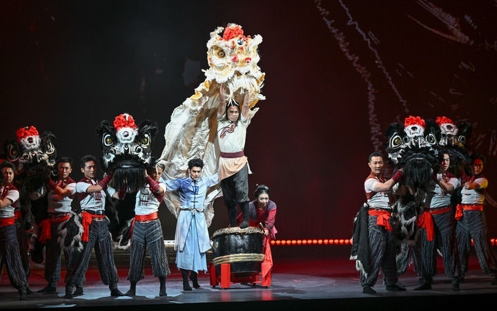 這是2025年11月4日在第十四屆中國(guó)藝術(shù)節(jié)閉幕式現(xiàn)場(chǎng)拍攝的舞劇《醒·獅》。新華社記者 陳誠(chéng) 攝