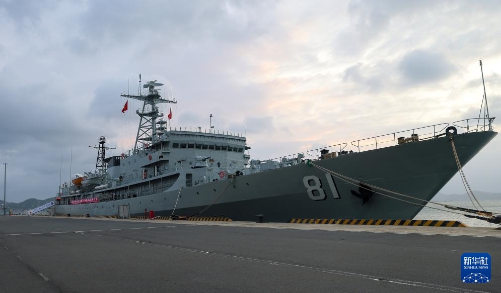 11月24日,中國(guó)海軍鄭和艦停泊在越南金蘭港碼頭。新華社發(fā)(呂志浩攝)