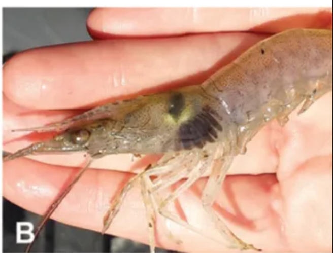 △得了黑鰓病的蝦